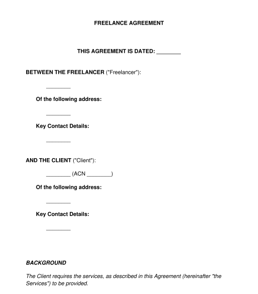 The Freelance Agreement will set out the exact scope of work, as well as timeframes for completion of work, payment terms and dispute resolution mechanisms.