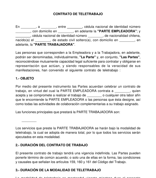 Contrato de Trabajo a Distancia - Modelo | Word y PDF
