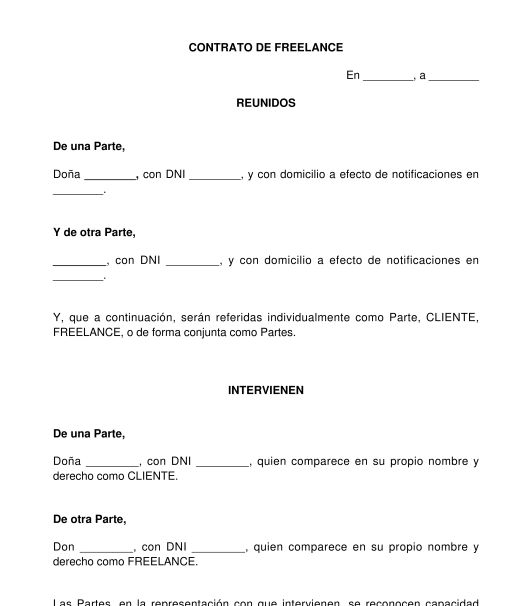 Contrato de freelance - Modelo, Formato - Word y PDF