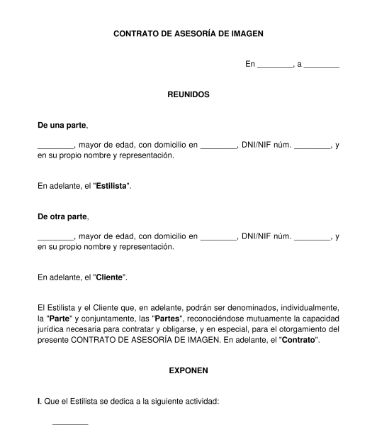 Mediante este contrato, el estilista se compromete a prestar servicios de asesoría de imagen, incluyendo todas las actividades que las partes libremente acuerden. Así, se podrá incluir el asesoramiento en las siguientes tareas:
