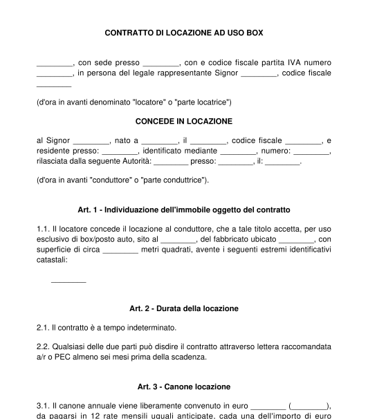 Il contratto di locazione di box/garage può avere una durata indefinita, ossia non per forza vi deve essere un termine, a differenza dei contratti di locazione ad uso abitativo e ad uso commerciale.