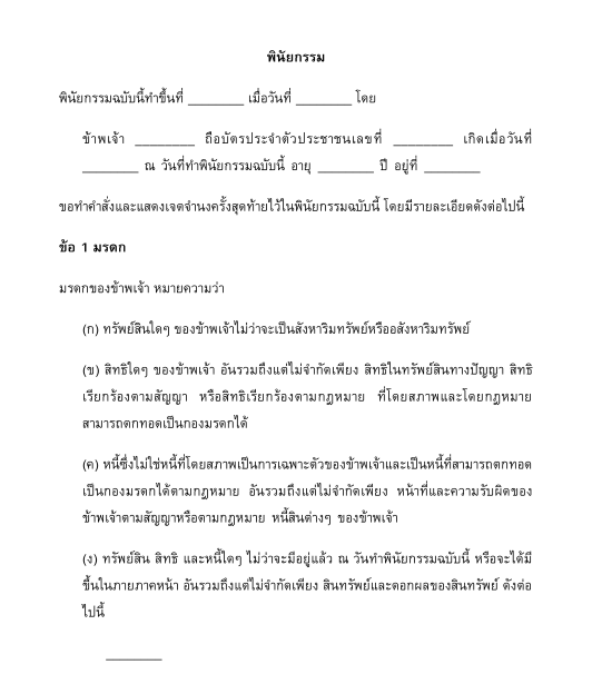 พินัยกรรม - แบบฟอร์ม ตัวอย่างสำหรับกรอก - Word และ PDF