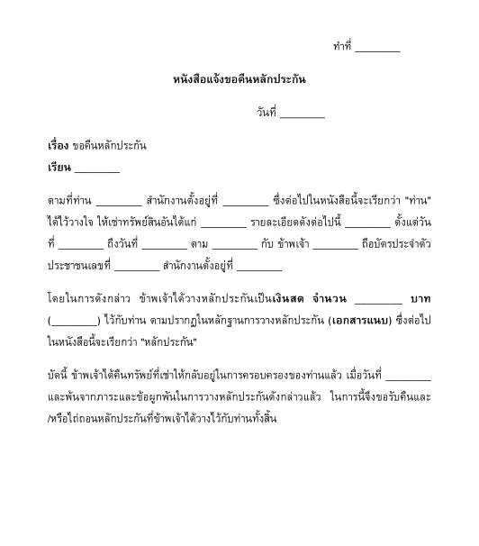 หนังสือแจ้งขอคืนหลักประกัน กรอกแบบฟอร์ม